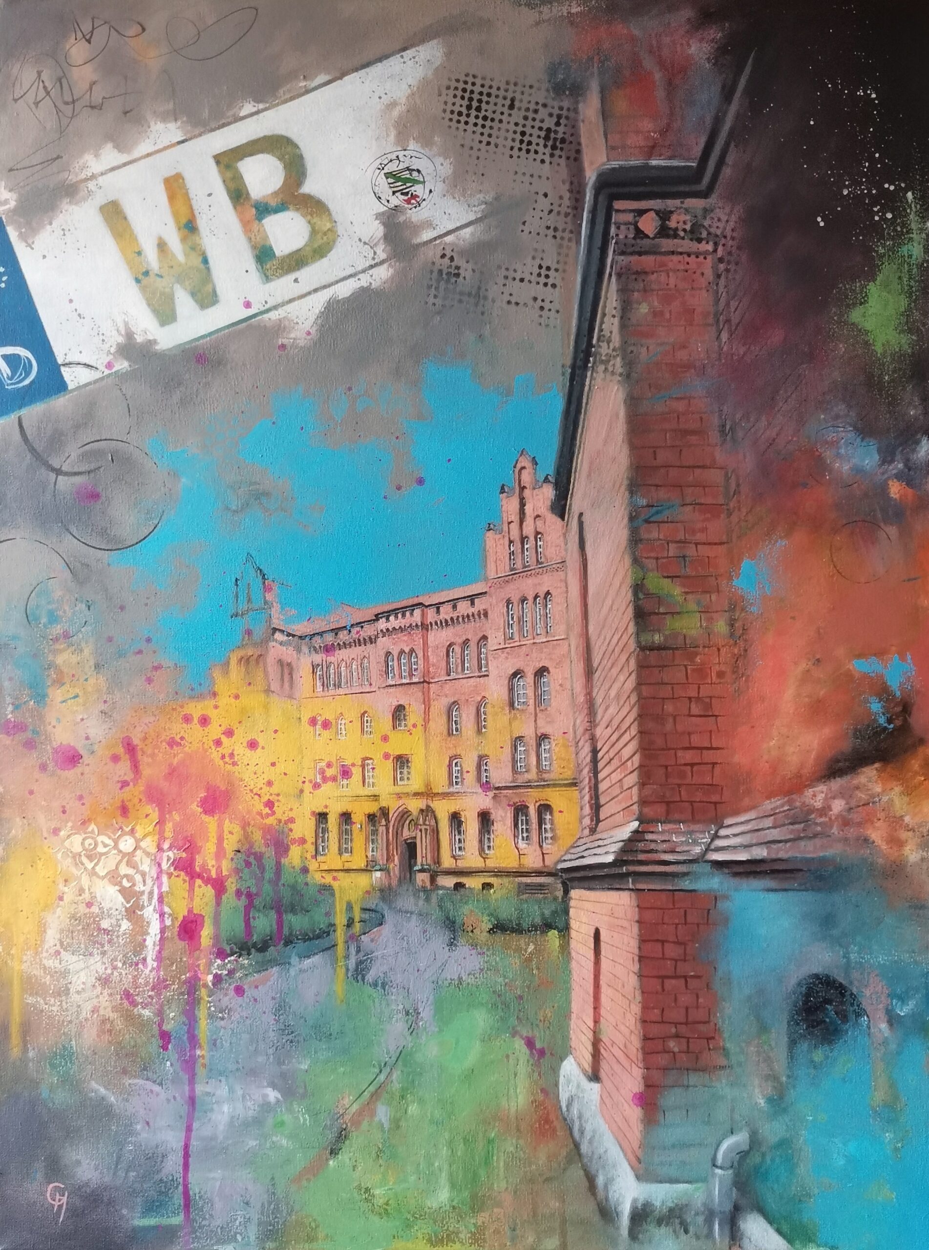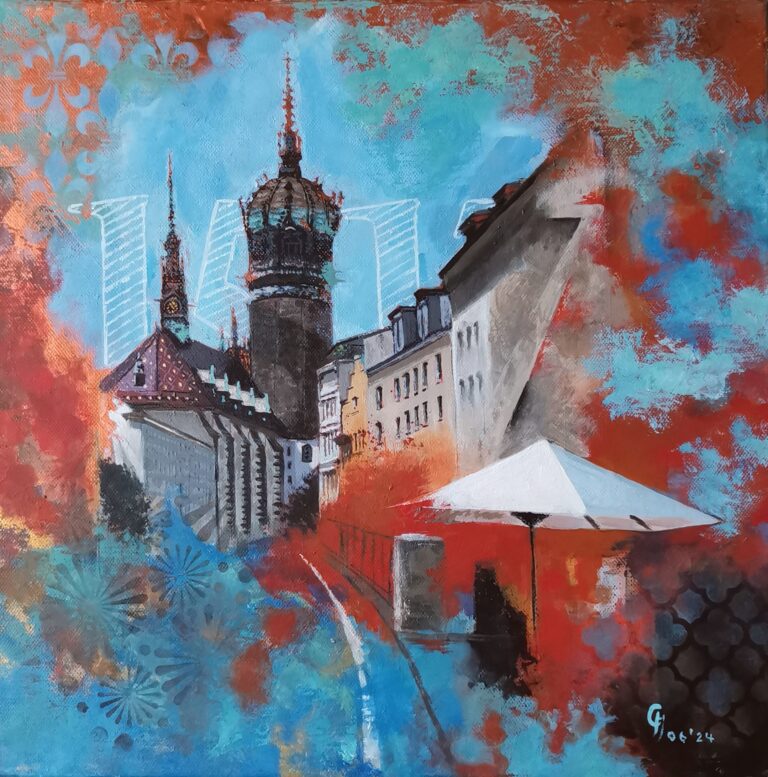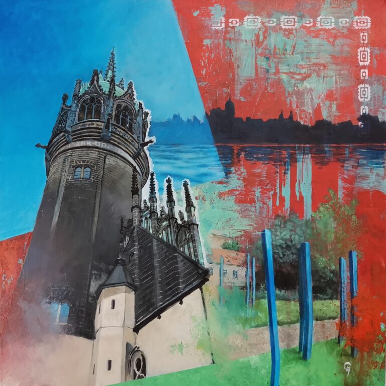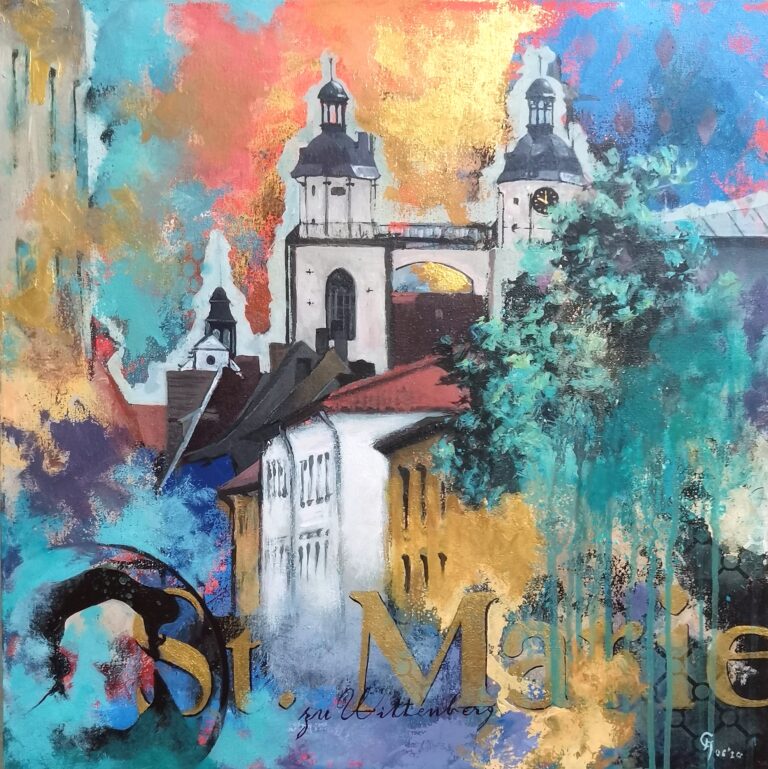 Der Werkkomplex „Wittenberg“ setzt sich mit der Stadt als historisch, architektonisch und symbolisch aufgeladenem Ort auseinander. Gebäude, Stadtansichten und Figuren erscheinen dabei nicht dokumentarisch, sondern als verdichtete Bildräume zwischen Geschichte, Gegenwart und Projektion.